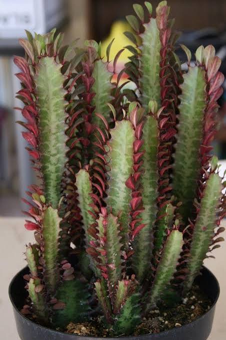 2. شکل ظاهری: برگهای افوربیا معمولاً نوکتیز و ضخیم هستند و برخی از گونهها گلهای کوچک و زیبایی با رنگهای زرد، قرمز یا سبز دارند که به جذابیت این گیاه افزوده است.